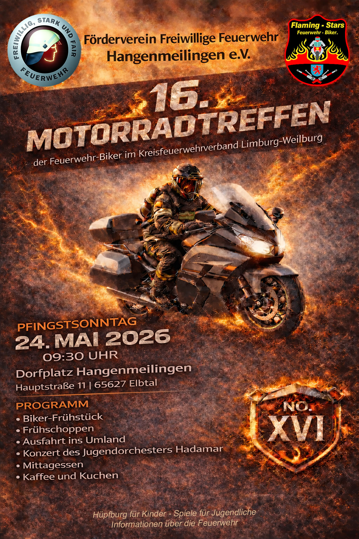 An diesem Pfingstwochenende sollte die Jubiläumsfeier, im Zusammenhang des 12. Motorradtreffen der Feuerwehr-Biker im Kreisfeuerwehrverband Limburg-Weilburg, in Elbtal, stattfinden.